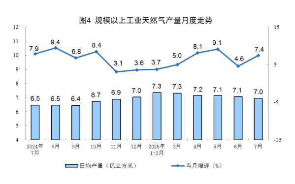 7月规上工业天然气产量216亿立方米华楚新起点,同比增长7.4%7月规上工业天然气产量216亿立方米,同比增长7.4%